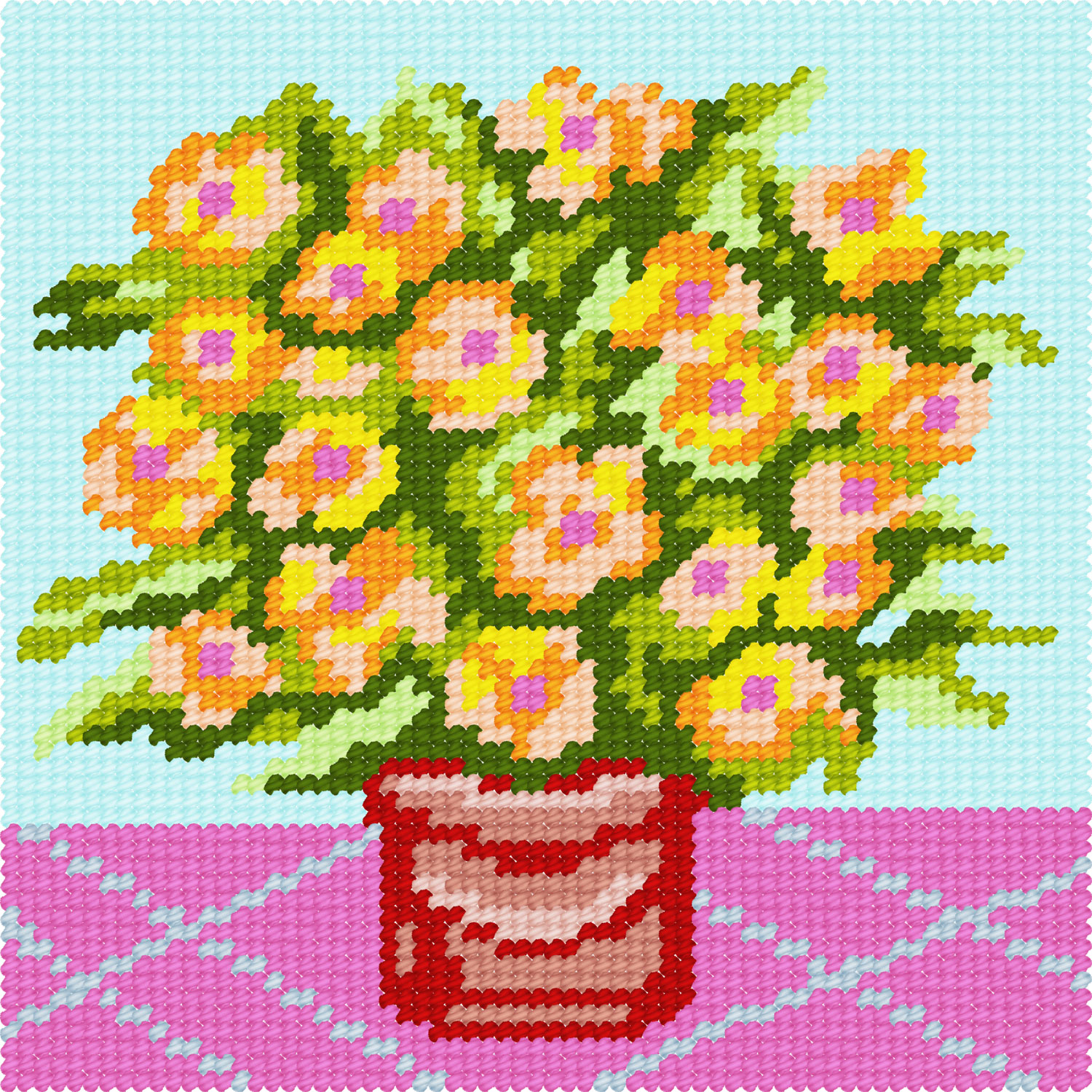 Вишивати дуже зручно, адже кольорову схему вже нанесено на канву так, що на кожному перетині ниток канви знаходиться кольоровий квадратик, тож помилитися просто неможливо.