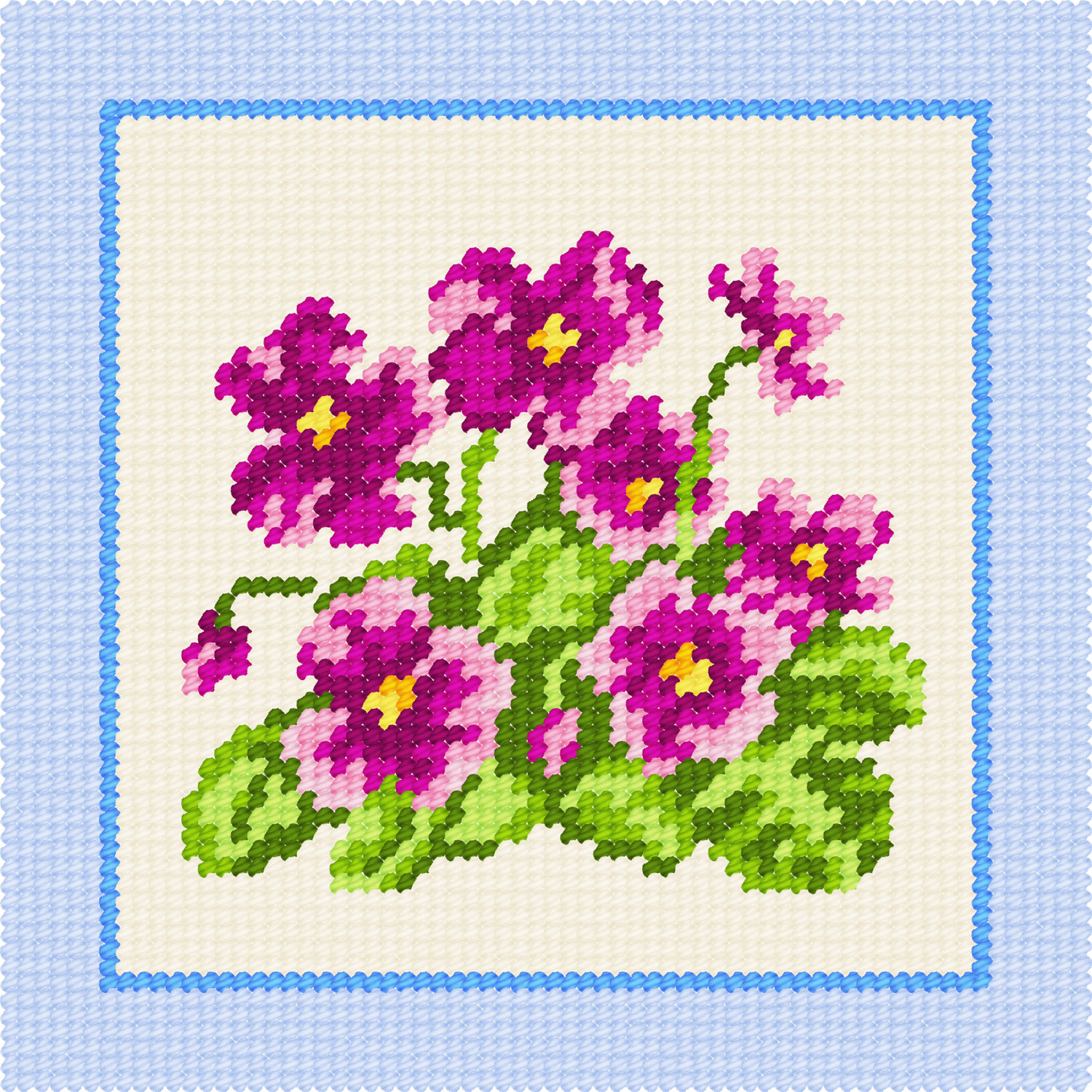Вишивати дуже зручно, адже кольорову схему вже нанесено на канву так, що на кожному перетині ниток канви знаходиться кольоровий квадратик, тож помилитися просто неможливо.