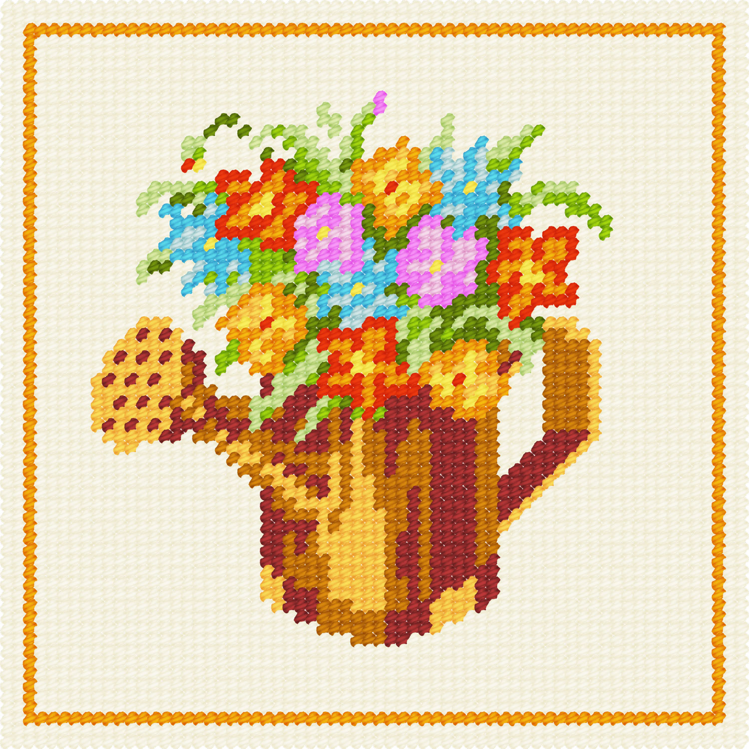 Набір для вишивання по канві з нанесеним рисунком . Розмір готової вишивки: 15×15 см.