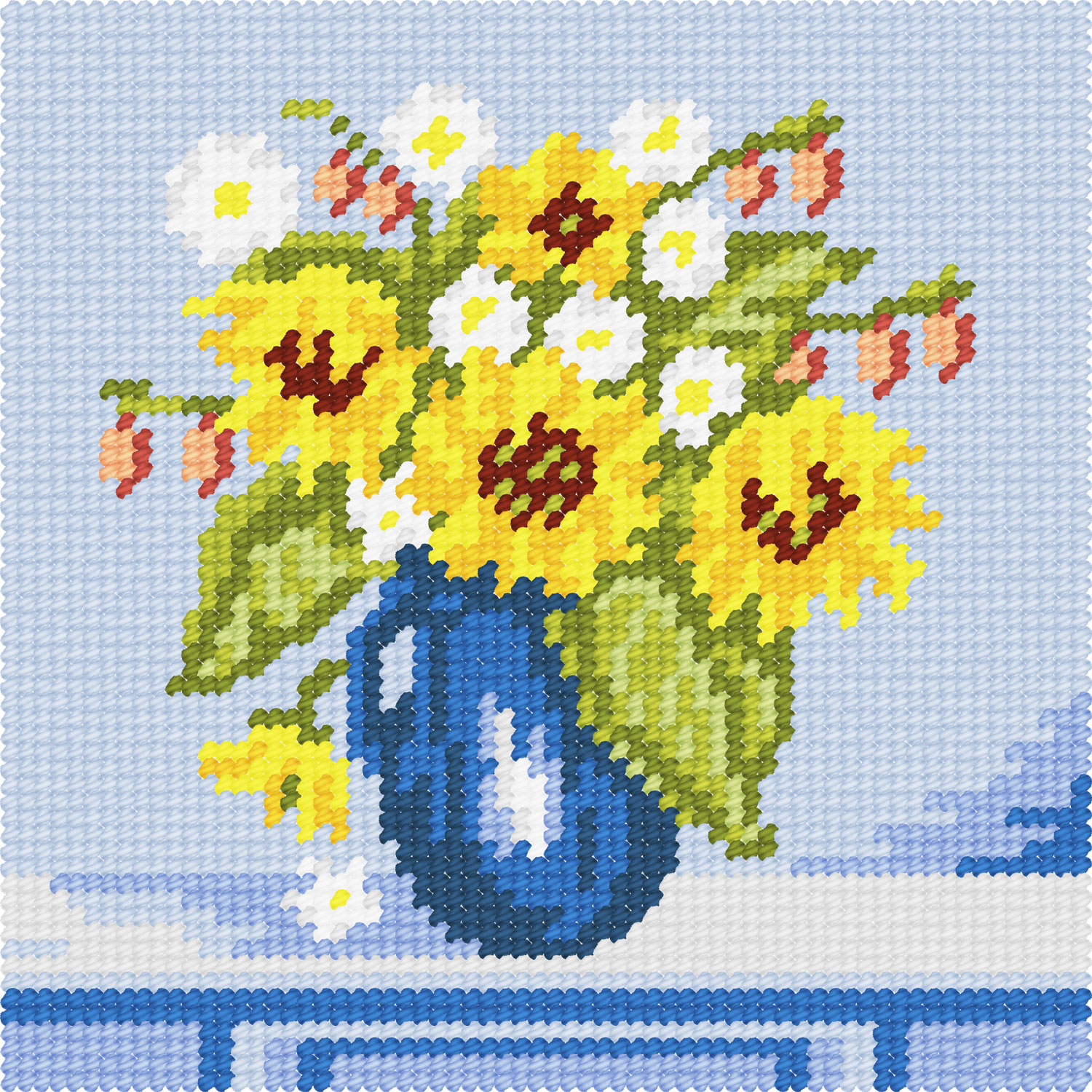 Вишивати дуже зручно, адже кольорову схему вже нанесено на канву так, що на кожному перетині ниток канви знаходиться кольоровий квадратик, тож помилитися просто неможливо.