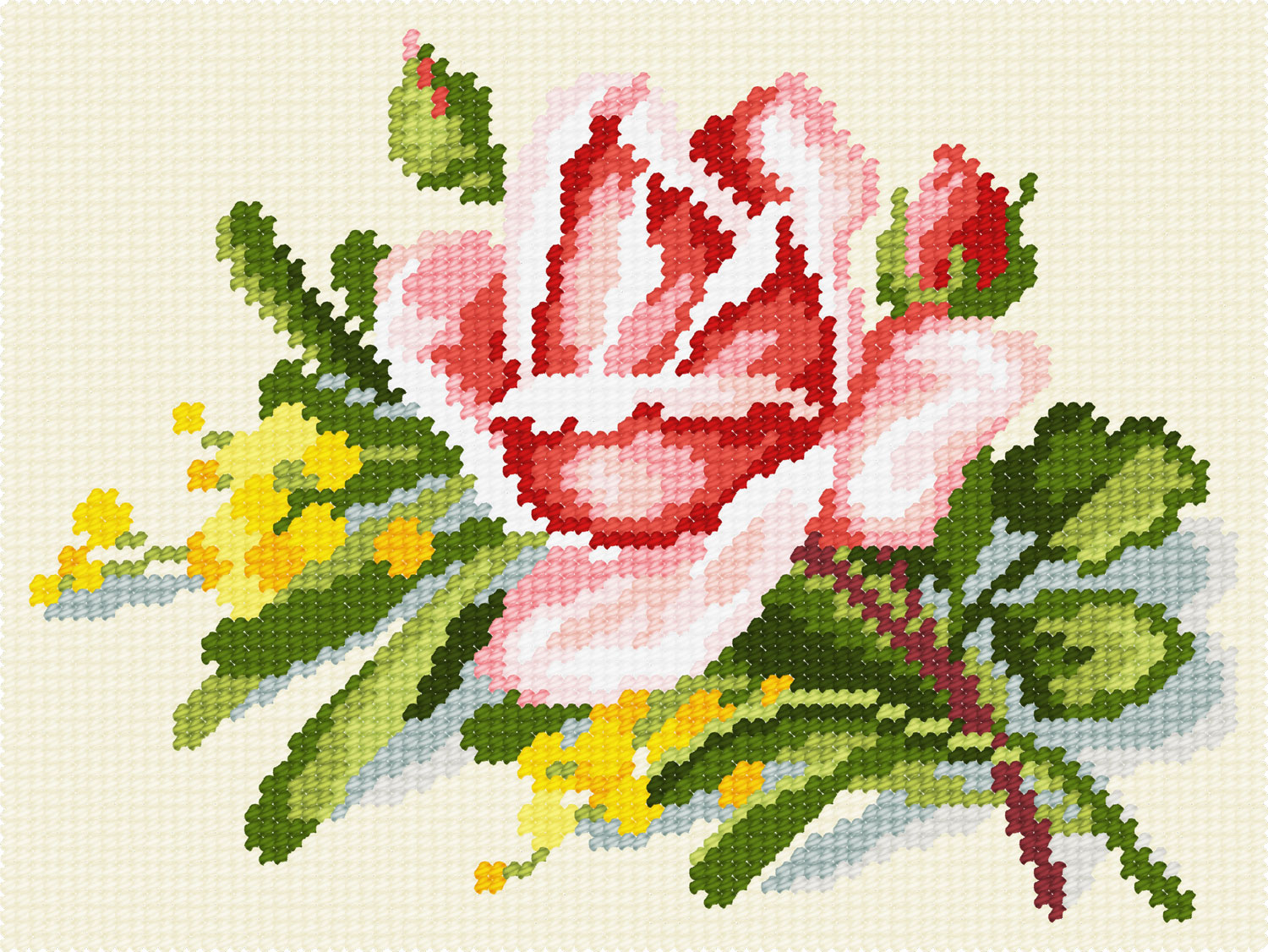 Перед вами подробная информация о вышивке BD-35: «Троянда і мімоза», К. Кляйн.