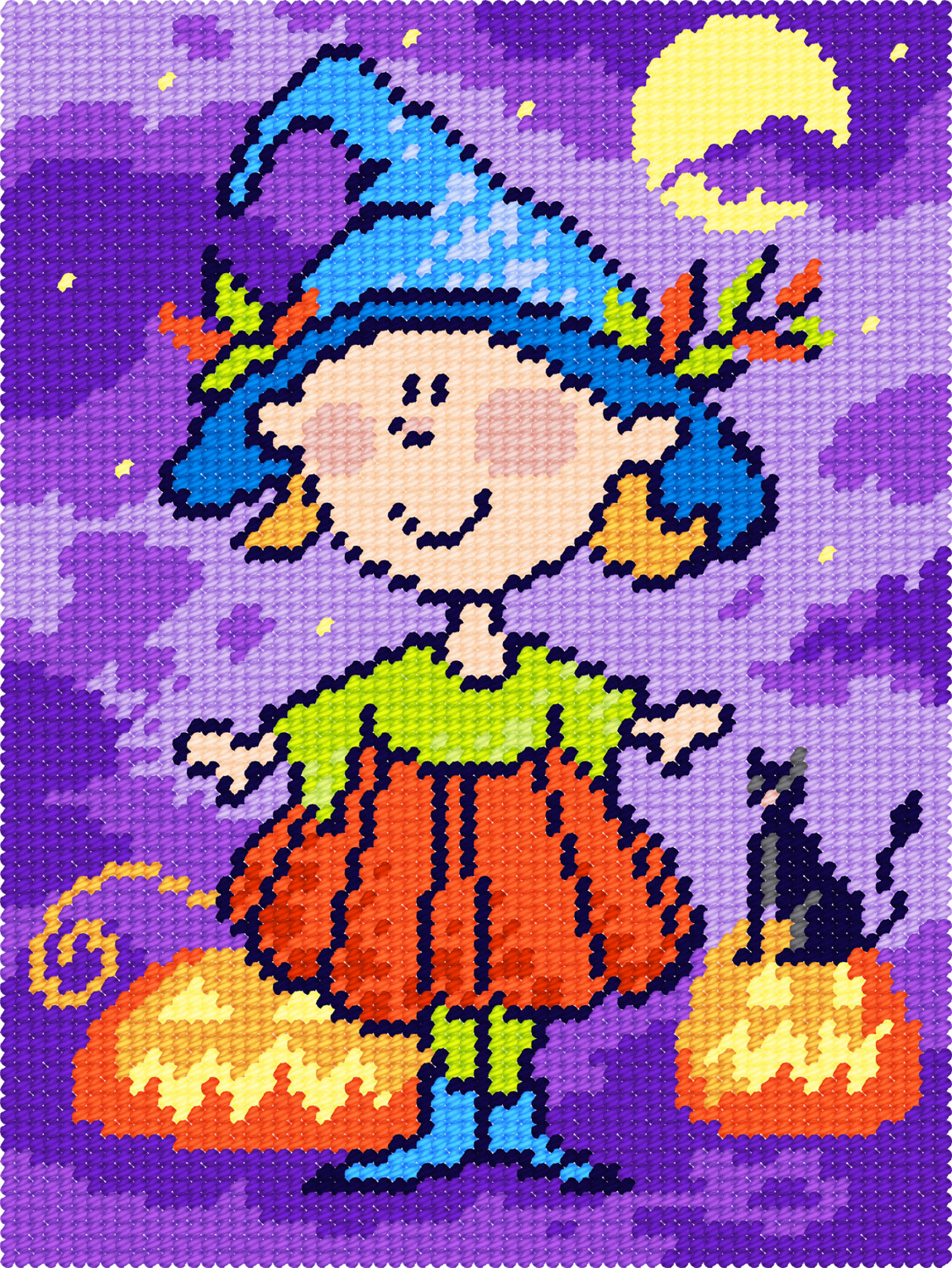 Другие вышивки: вигадані істоти, Гелловін, дитячі вишивки, дівчинка, коти, ніч, осінь, свійські тварини