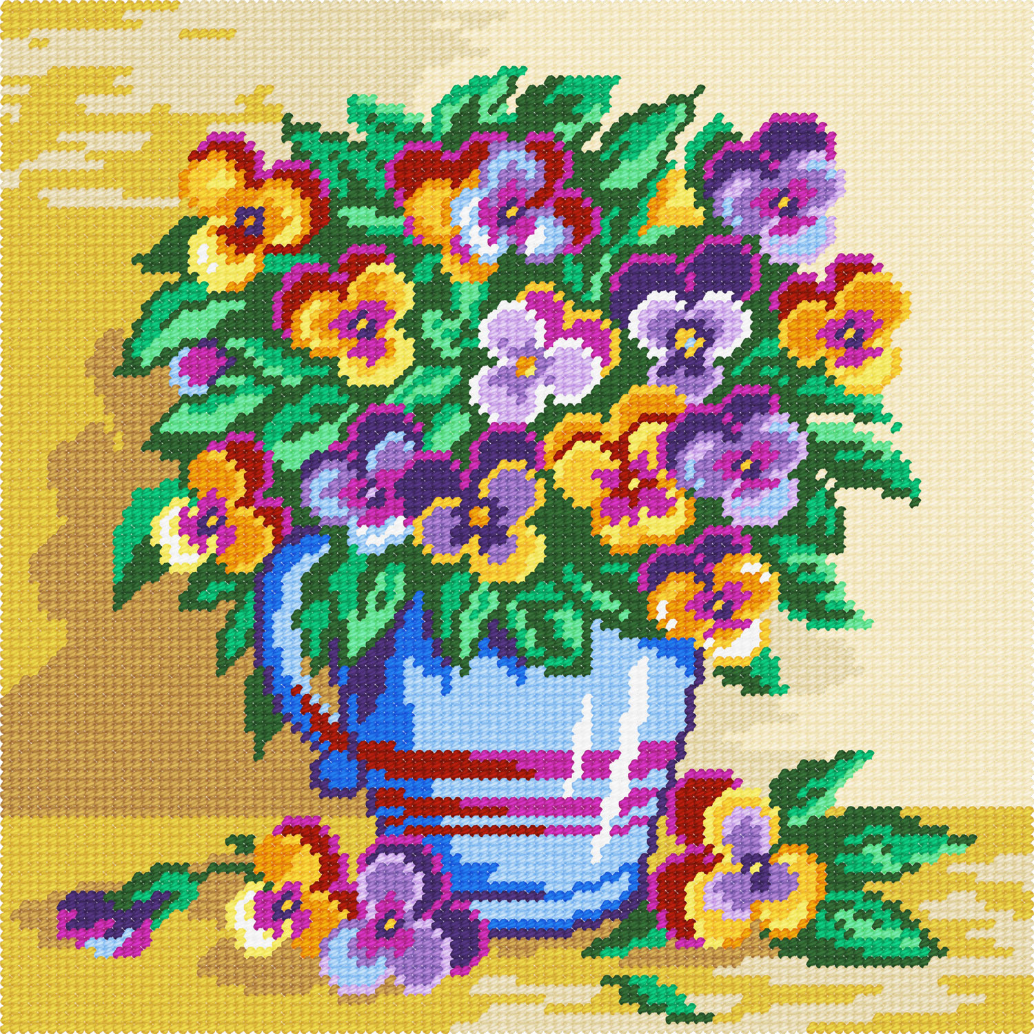 Перед вами подробная информация о вышивке BE-05: Фіалки у вазі.