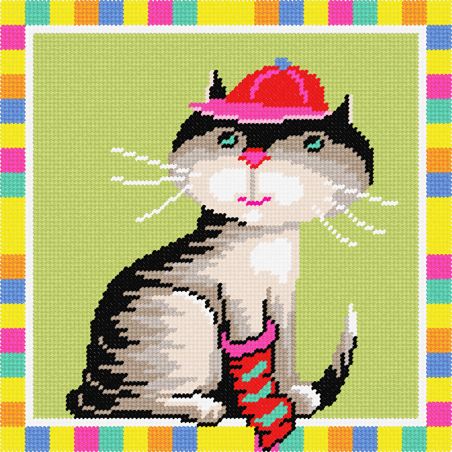 Перед вами подробная информация о вышивке BE-13: Кіт у картузі.