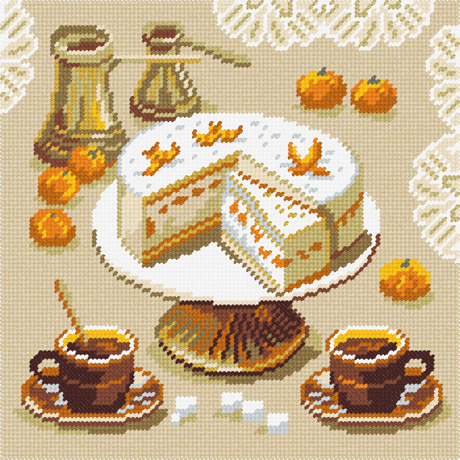 Перед вами подробная информация о вышивке BE-17: Торт, мандарини та кава.