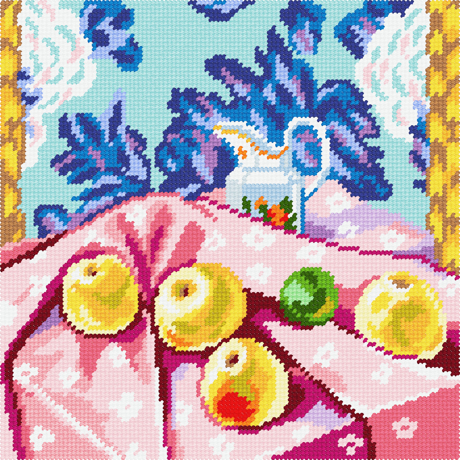 Перед вами подробная информация о вышивке BE-81: «Натюрморт з яблуками на рожевій скатертині», А. Матісс.