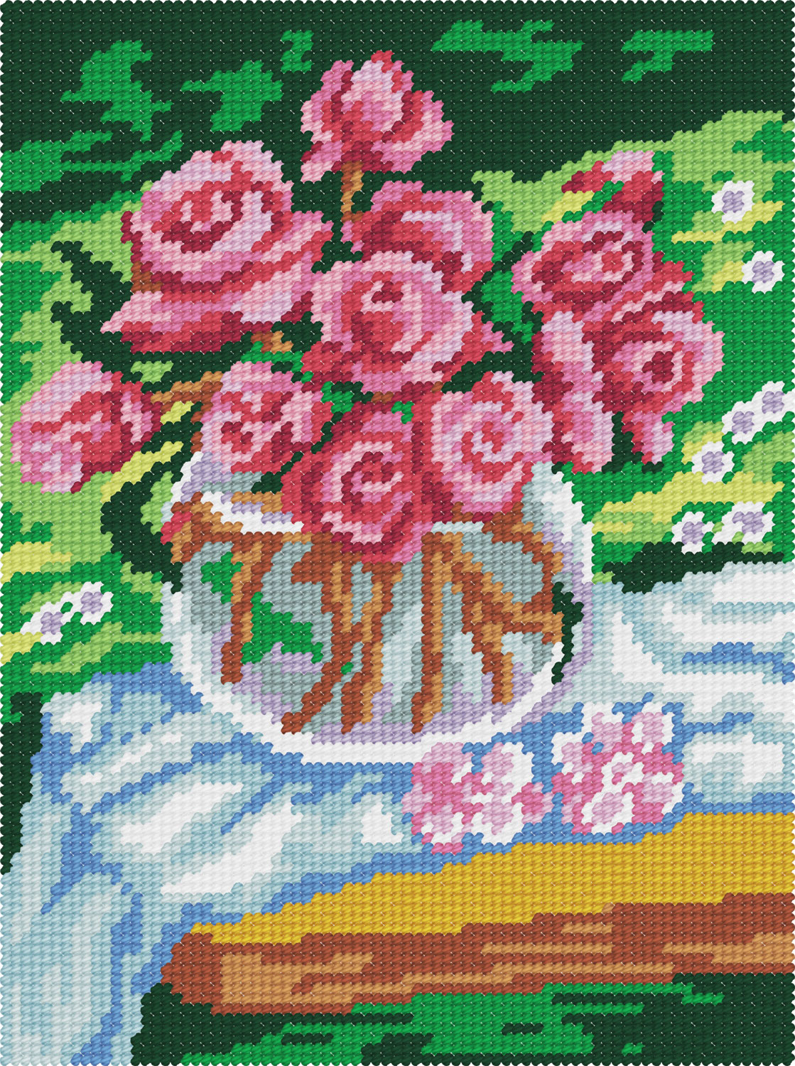 Перед вами подробная информация о вышивке BH-17: Троянди в скляній вазі.