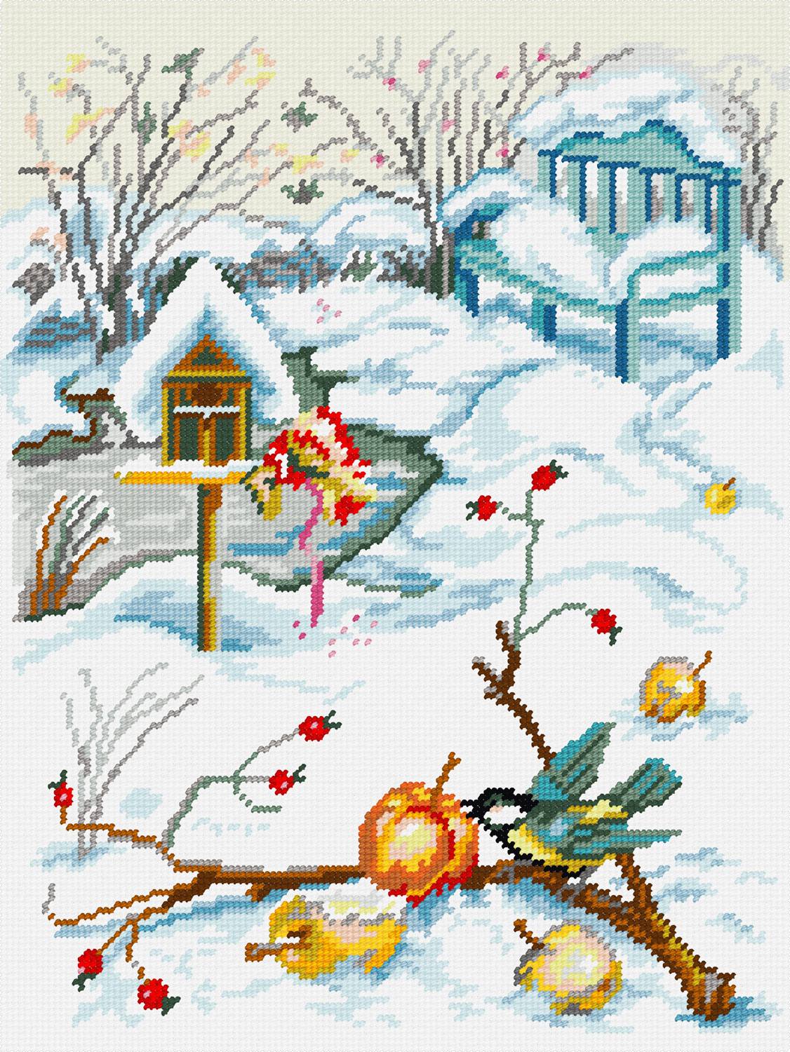 Перед вами подробная информация о вышивке J-38: Яблука на снігу.
