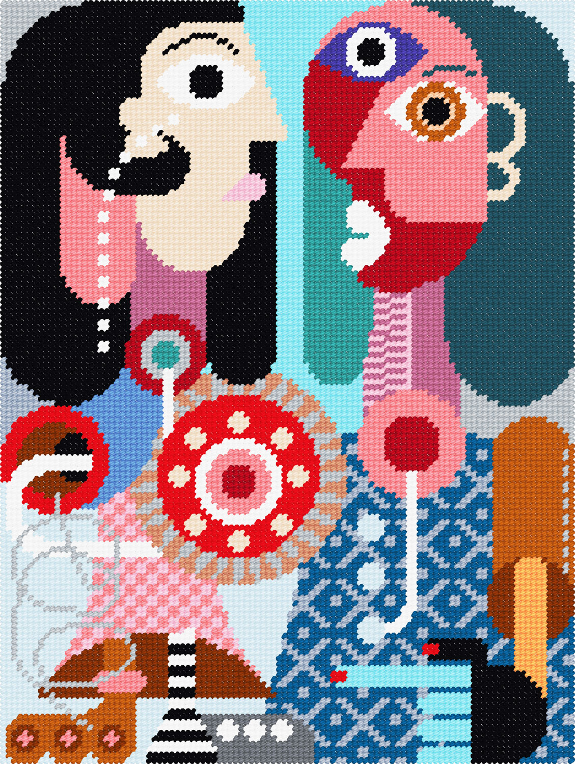 Вишивати дуже зручно, адже кольорову схему вже нанесено на канву так, що на кожному перетині ниток канви знаходиться кольоровий квадратик, тож помилитися просто неможливо.