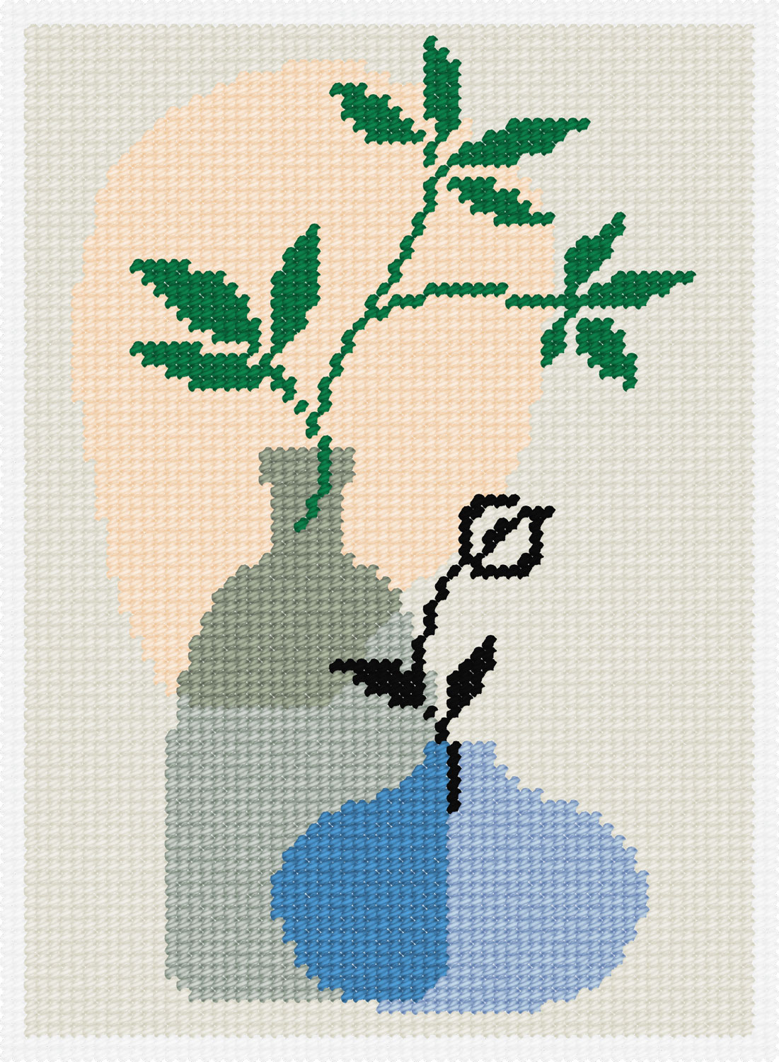 Картина вишивається напівхрестиком одразу по канві. П’яльці не потрібні, проте рекомендується вишивальний верстат (рамка).