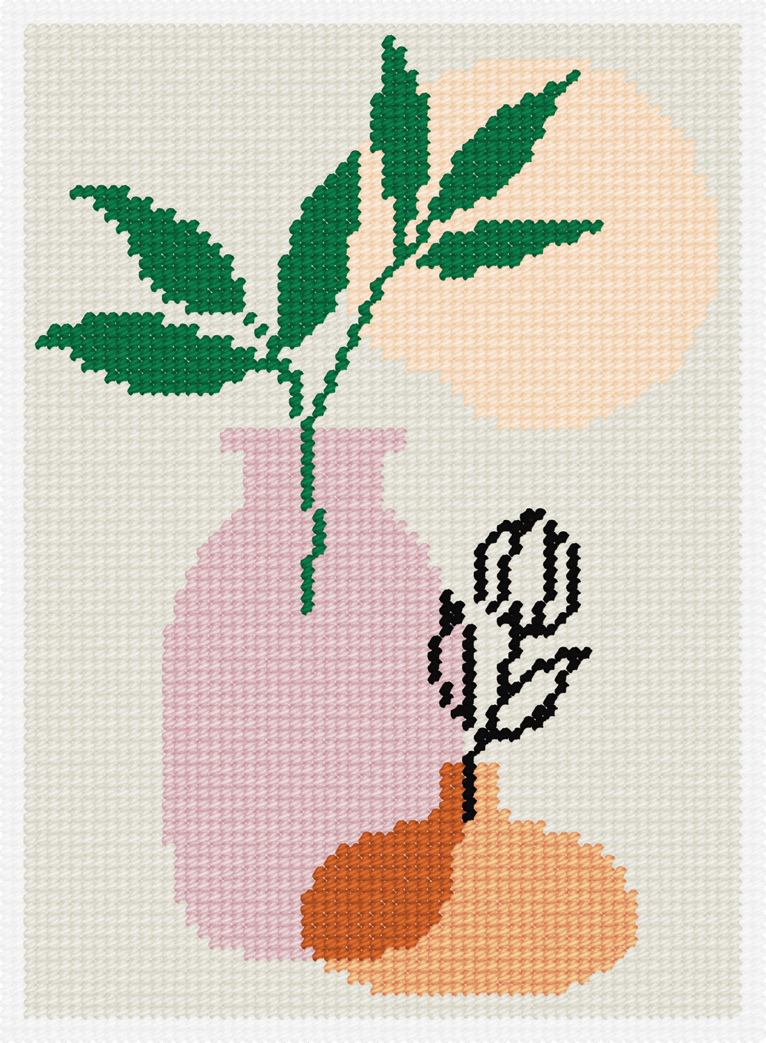 Картина вишивається напівхрестиком одразу по канві. П’яльці не потрібні, проте рекомендується вишивальний верстат (рамка).