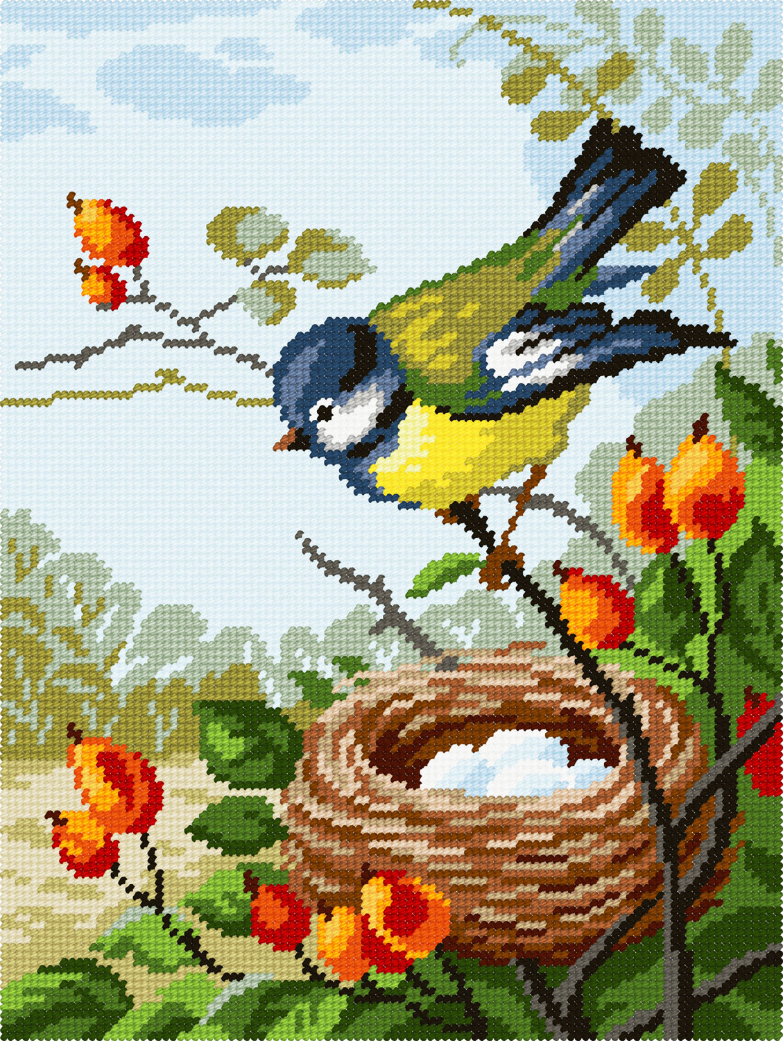 Перед вами подробная информация о вышивке TL-73: Синичка біля гнізда.