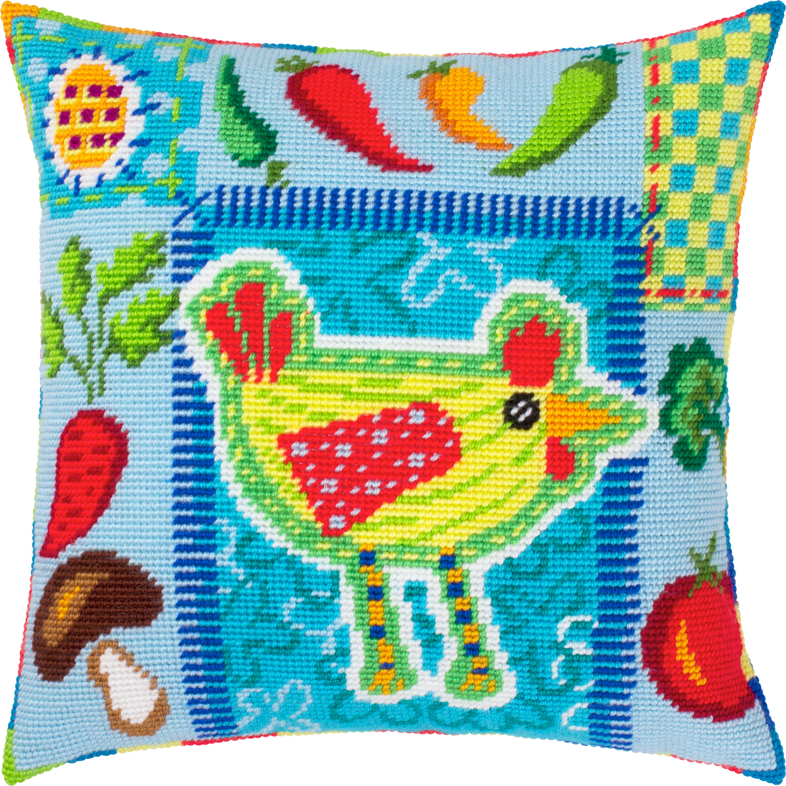 Набір для вишивання декоративної подушки розміром 40×40 см. Подушка вишивається напівхрестиком (гобеленовим швом).