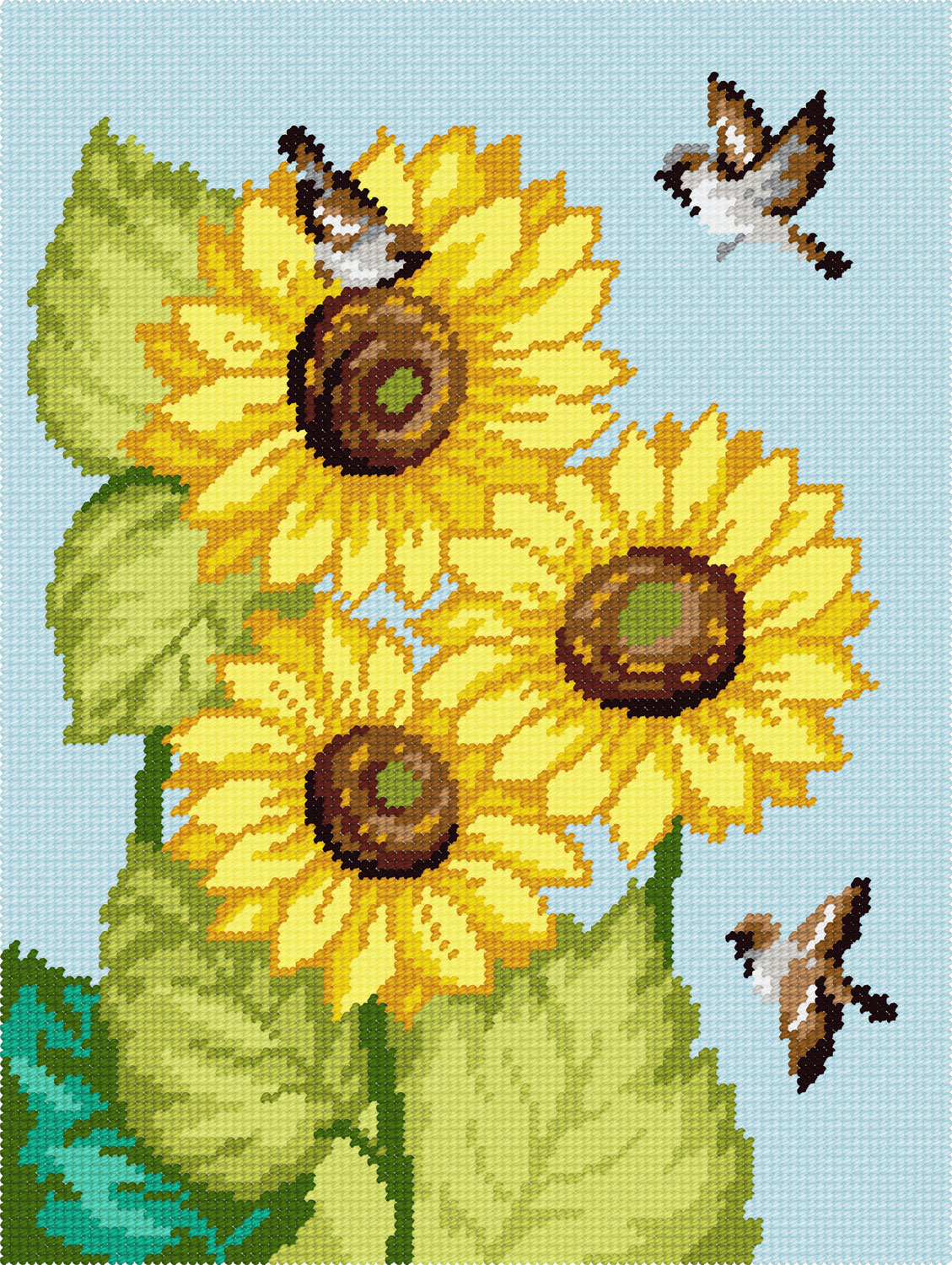 Перед вами подробная информация о вышивке BL-29: Горобці на соняшниках.